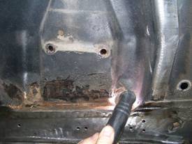 be careful not to cut into the main frame rail.