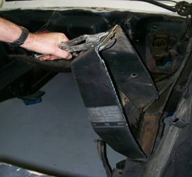 shock towers. The first cut will be made from inside the wheel